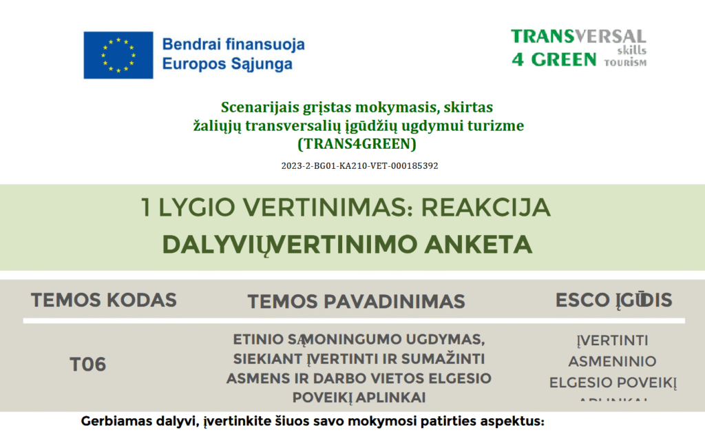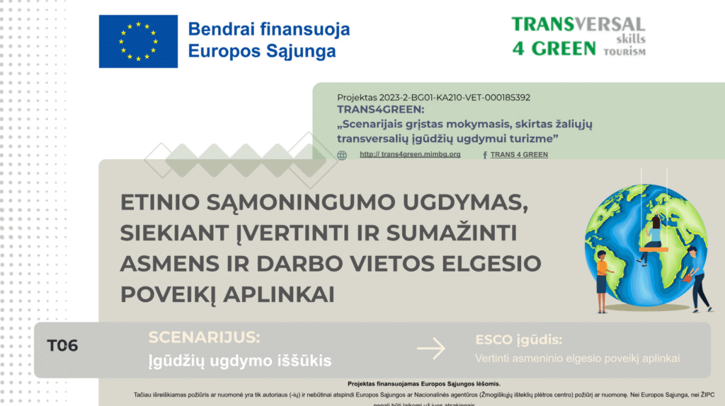 Etinio sąmoningumo ugdymas, siekiant įvertinti ir sumažinti asmens irdarbo vietos elgesio poveikį aplinkai Resources Intro Resources Downloads Intro Resources Downloads Theory Presentation ToolBox Scenario Individual Learning Assessment