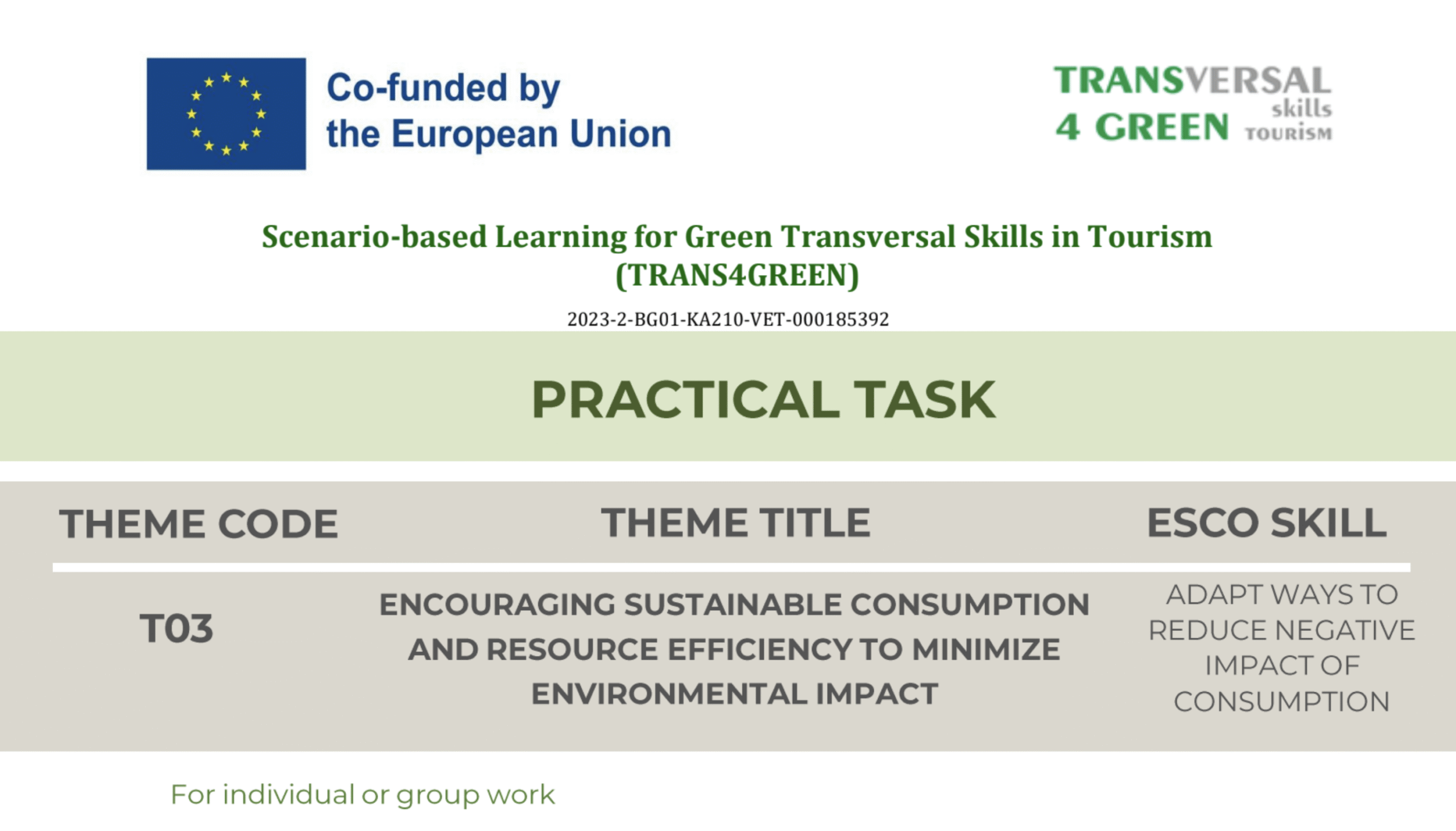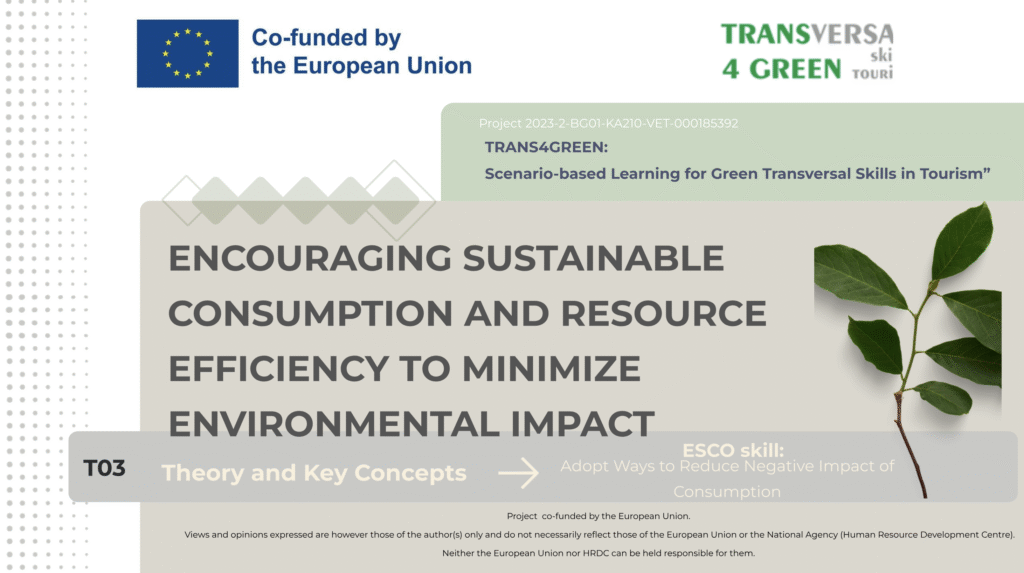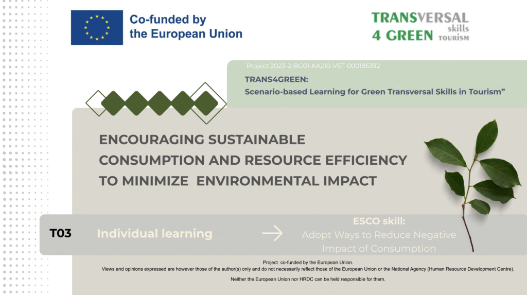 Encouraging sustainable consumption and resource efficiency to minimize environmental impact Resources Intro Resources Downloads Intro Resources Downloads Theory Presentation ToolBox Scenario Practical Task Individual Learning Assessment