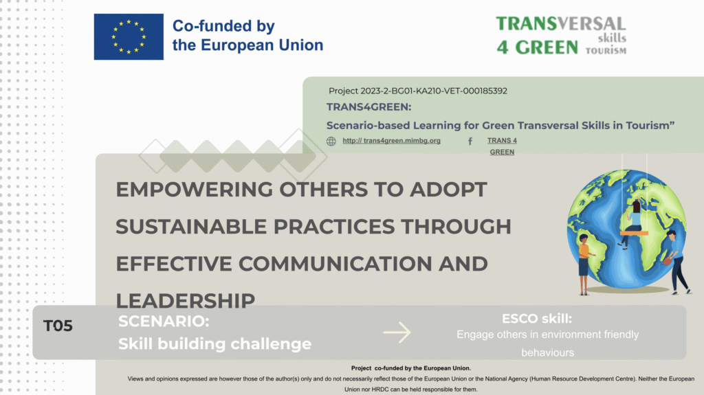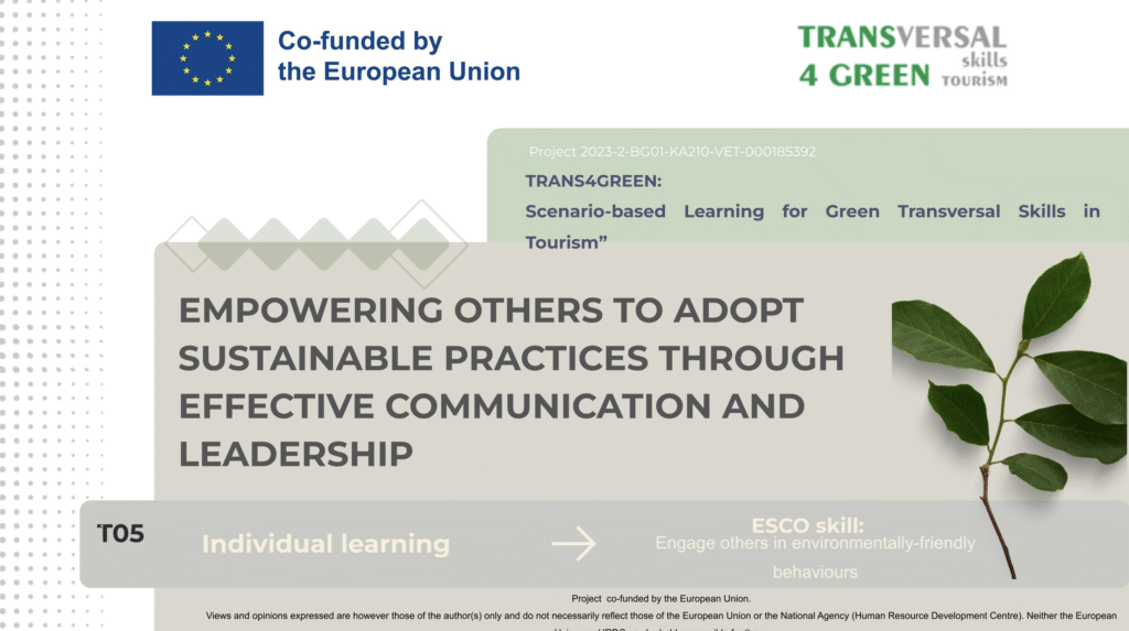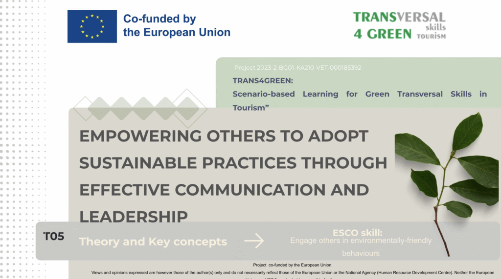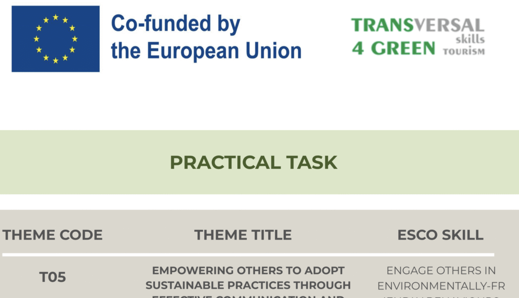 Empowering others to adopt sustainable practices through effective communication and leadership Resources Intro Resources Downloads Intro Resources Downloads Theory Presentation ToolBox Scenario Practical Task Individual Learning Assessment